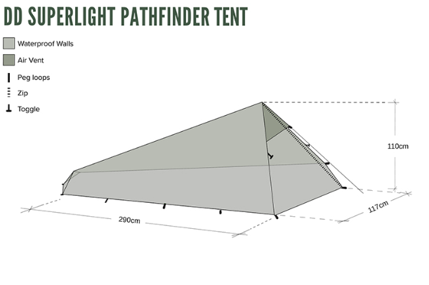 - Compatible with the DD SuperLight - Pathfinder Mesh Tent, or used by itself to create a simple and roomy waterproof shelter.
