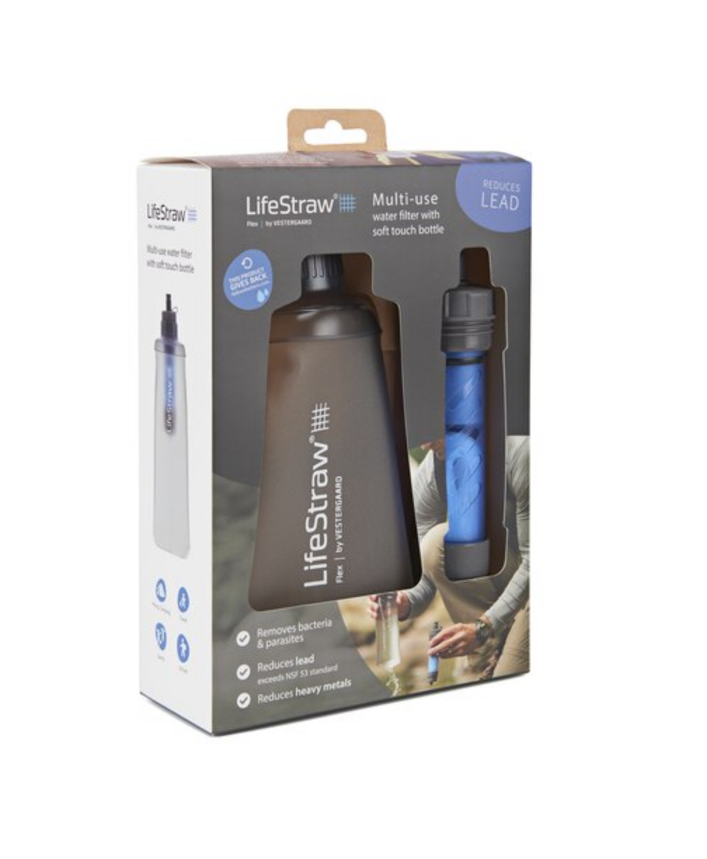 - Kit includes: LifeStraw Flex filter, 22 oz soft bottle and backwashing syringe for cleaning