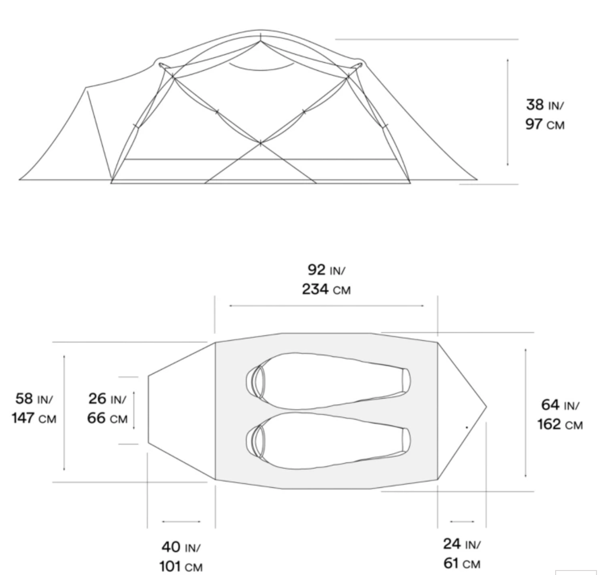 - Tent Floor Area: 40 sq ft / 3.7 sq m